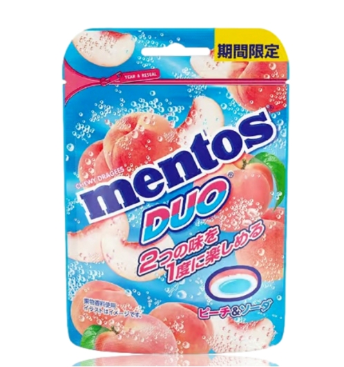Mentos 2 in 1 Peach Soda Flavor 45g