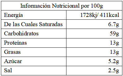 Pasta Sazonadora 11%: Azúcar, preparación de aceite (aceite de salvado de arroz, agua, aceite de canola, cebollas verdes), potenciadores del sabor: E621, E627, E631, condimento (maltodextrina, potenciador del sabor: E640, proteína vegetal hidrolizada (soja, trigo), semillas de mostaza, soja, almidón de maíz, zanahoria), especias (chile, ajo, cebolla), sal, glucosa, shiitake, acidulante: E330.